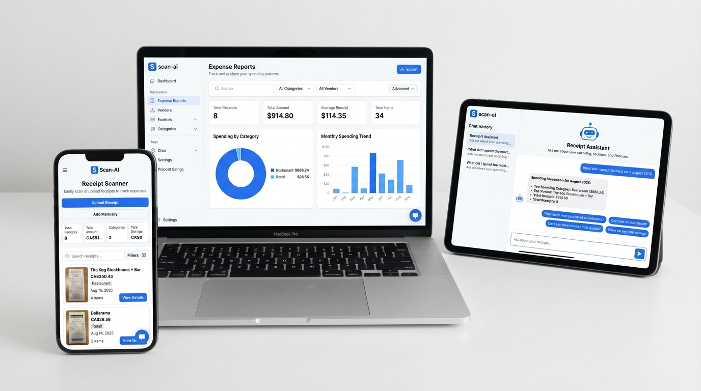 Tax amounts extracted from every receipt and tracked separately. Claim your input tax credits without sorting through a pile of receipts at filing time.